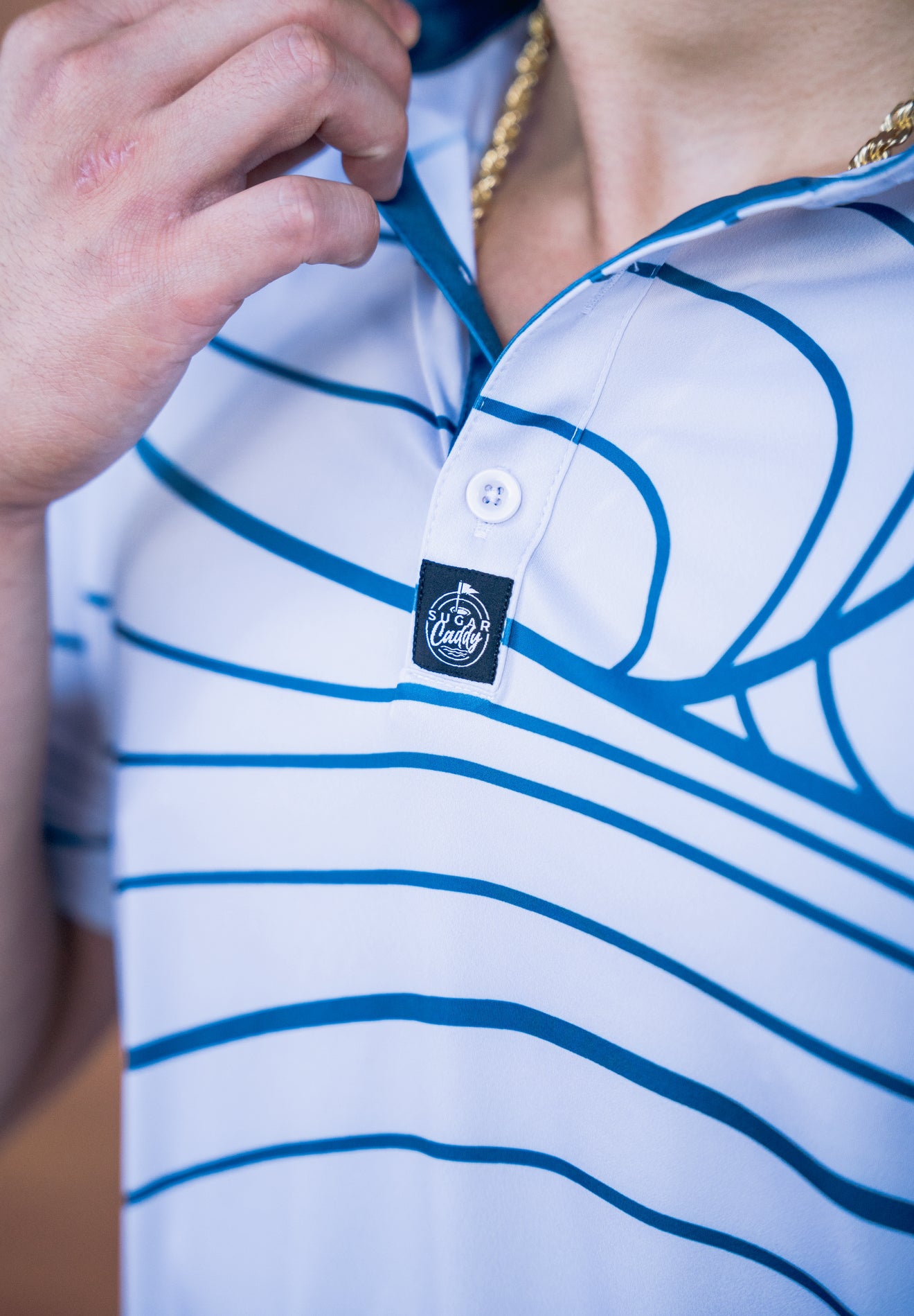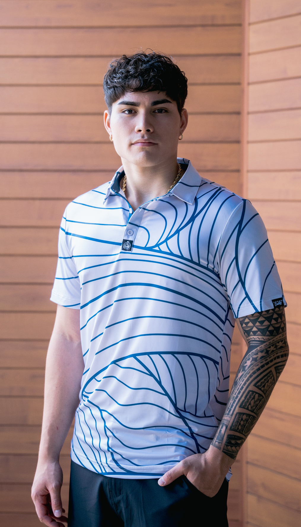 Polos are made from our own blend of polyester and spandex with moisture wicking material. They are a "true to fit" sizing. (Sizing chart located at bottom of home page)
